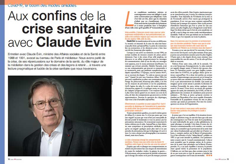 Entretien avec Claude Évin, ministre des Affaires sociales et de la Santé entre 1988 et 1991, avocat au barreau de Paris et médiateur. Nous avons parlé de la crise, de ses répercussions sur le domaine de la santé, du rôle majeur de la médiation dans la gestion des crises et des leçons à retenir… à travers une lecture pragmatique et lucide de la crise sanitaire que nous traversons.