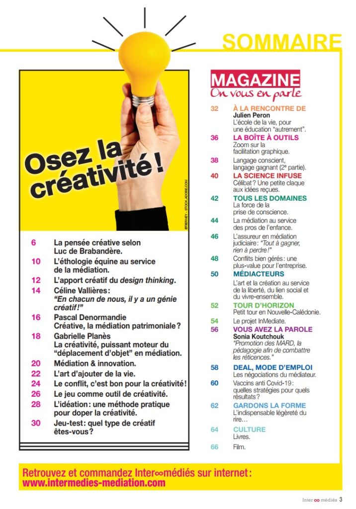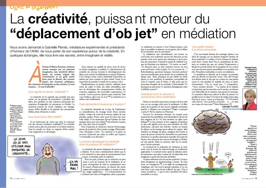 Nous avons demandé à Gabrielle Planès, médiateure expérimentée et présidente d’honneur de l’ANM, de nous parler de son expérience autour de la créativité. En quelques échanges, elle nous livre ses secrets, entre imaginaire et réalité.