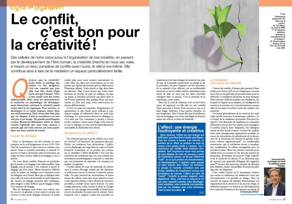 Des cellules de notre corps jusqu’à l’organisation de nos sociétés, en passant par le développement de l’être humain, la créativité cherche en nous ses voies, à travers un tissu complexe de conflits avec l’autre, le réel et soi-même. Elle contribue ainsi à faire de la médiation un espace particulièrement fertile.