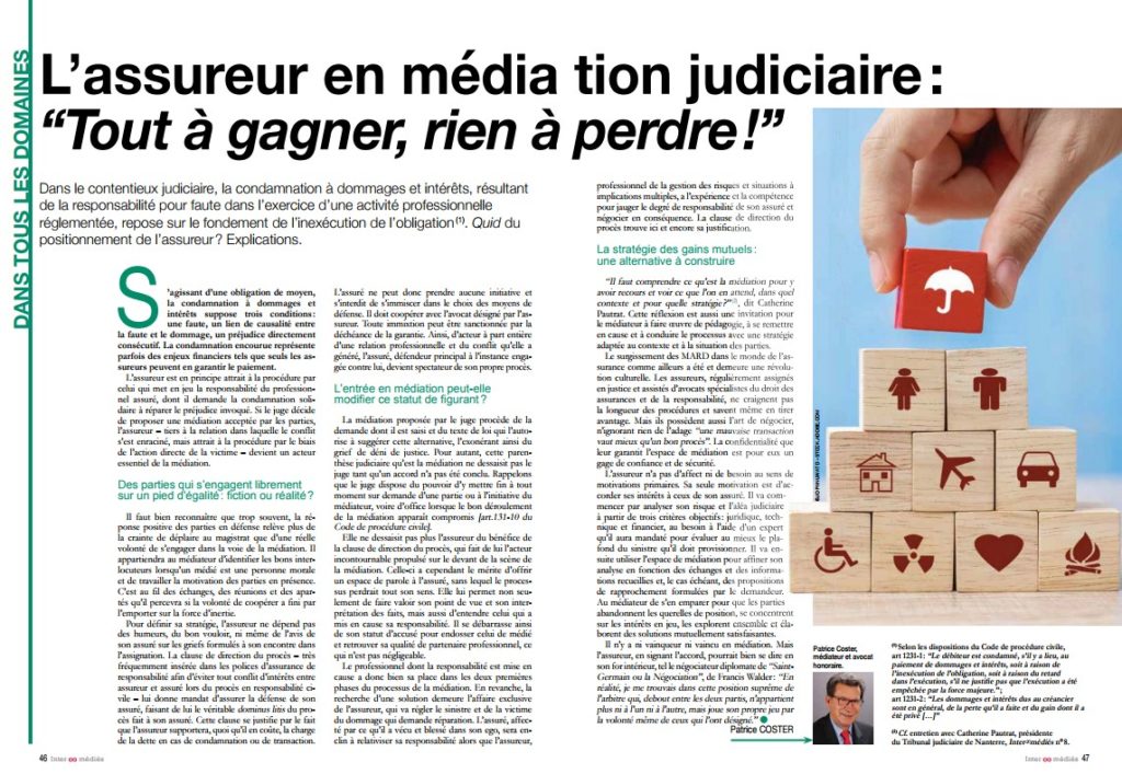 L’assureur en médiation judiciaire : “Tout à gagner, rien à perdre!”