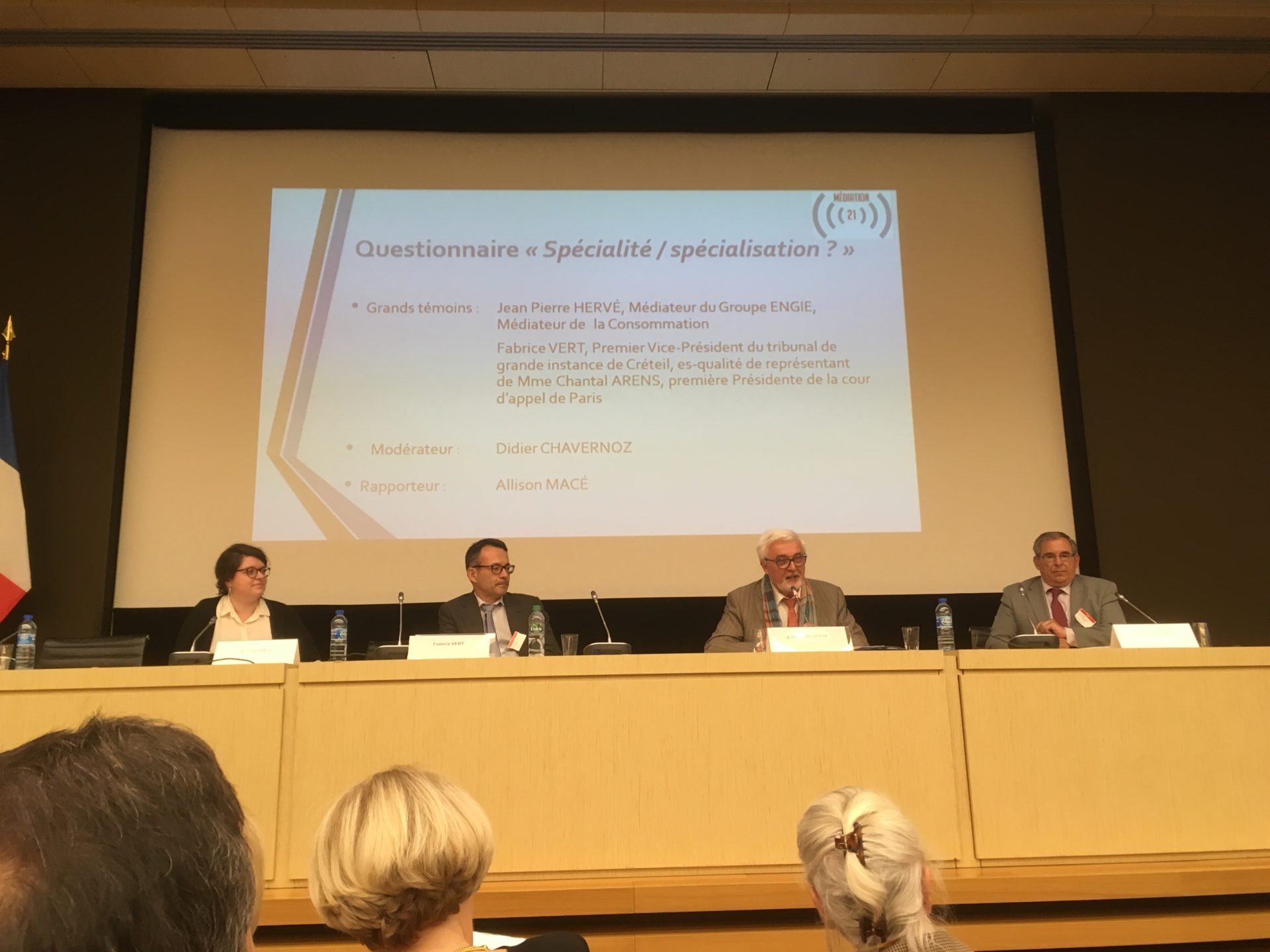 3- Jean-Pierre HERVE (Médiateur du groupe ENGIE, médiateur de la consommation) et Fabrice VERT (Premier Vice-Président du tribunal de grande instance de Créteil) abordent le thème de la spécialisation et des modalités qui doivent s’y rattacher.