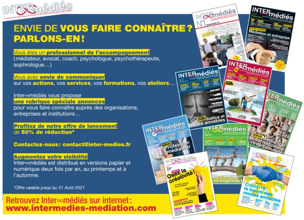 A partir du n° 10, INTER-Médiés vous propose une rubrique spéciale annonces. Profitez de notre offre de lancement : 50% de réduction jusqu’au 31 août 2021.